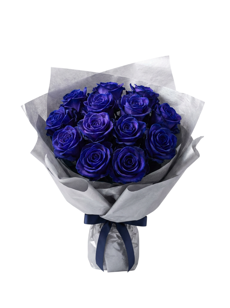 青いバラ — 自然界には存在しない神秘的な色。「奇跡」を象徴し、特別な想いを伝えるのに最適です