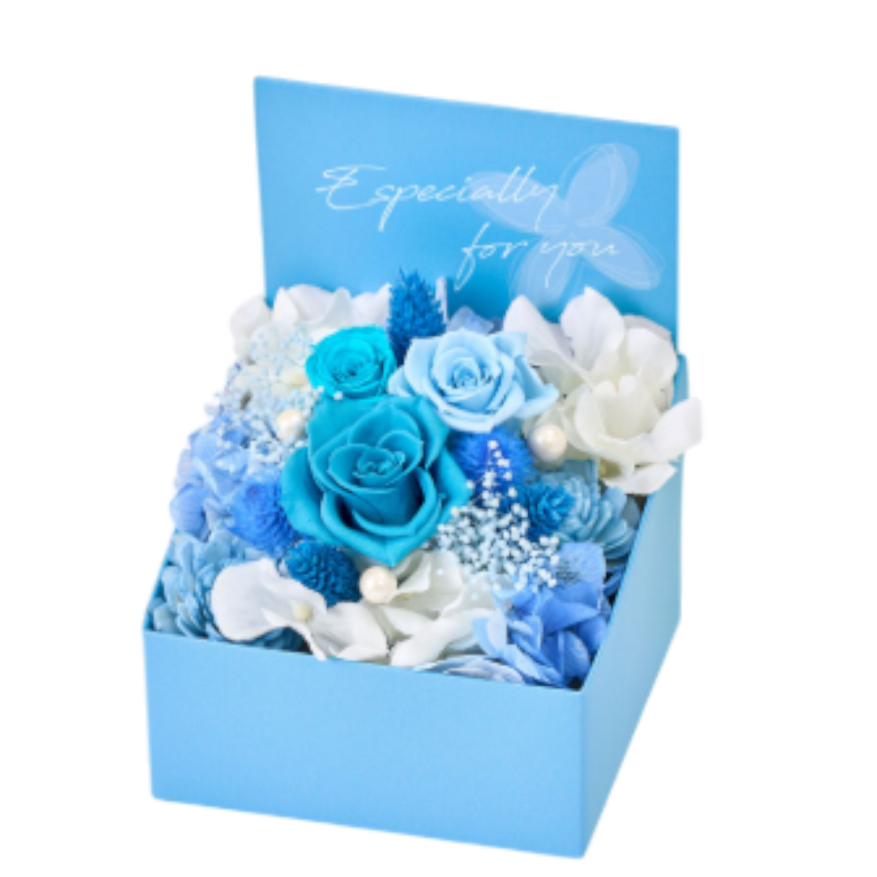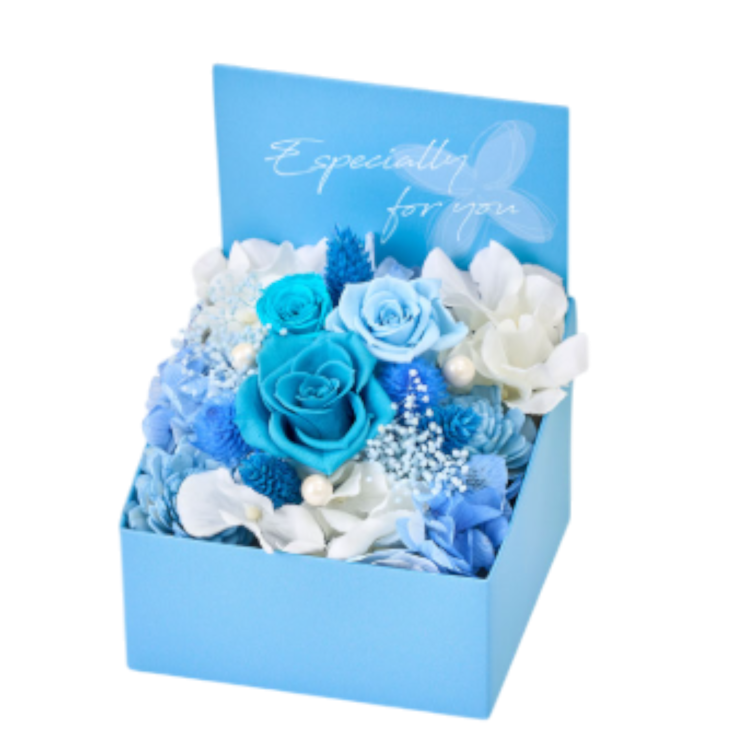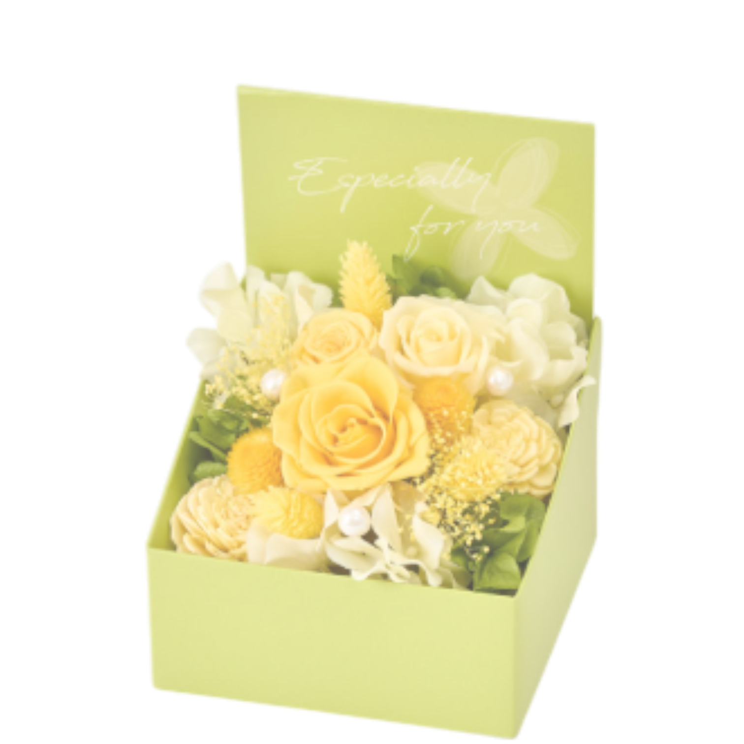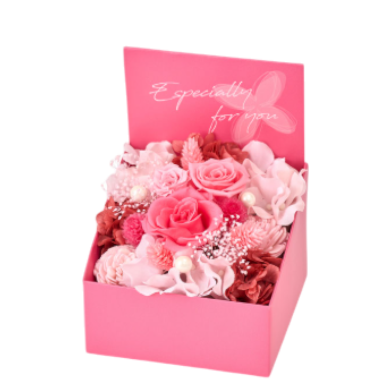 プリザーブドフラワー(枯れないお花)でできたプレゼントにピッタリのボックスです。